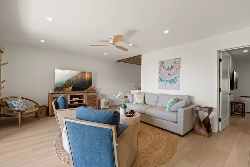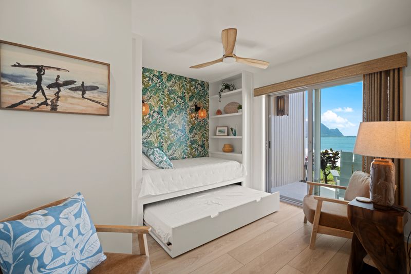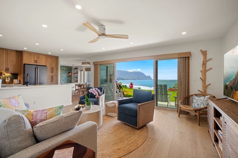 Experience the beauty of north shore sunsets on our two lanais, perfect for morning coffee, soaking up the sun or enjoying evening gatherings.
